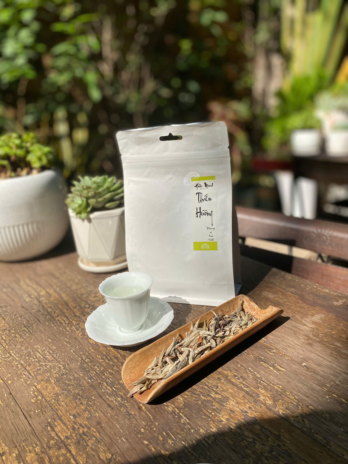 Thien Huong means the fragrance of heaven and earth. Deep in the old forests of Ha Giang mountains, ancient tea trees covered with moss and lichen have existed for hundreds of years. The Hmong people still say that they don’t know when these tea trees appeared in the old forests. They say that they were planted by fairies, so they are also called Tien Tea. With all our respect, we have chosen a minimalist processing method with the least intervention to preserve all the extremely precious essence of this tea. The tea has a pure and clear aroma, as if it is a convergence of the aroma of all kinds of wild orchids, a deep sweetness like dew on the leaves. It is not an exaggeration to say that this is the quintessence of heaven and earth converging in Thien Huong – Fragrance Of Sky.