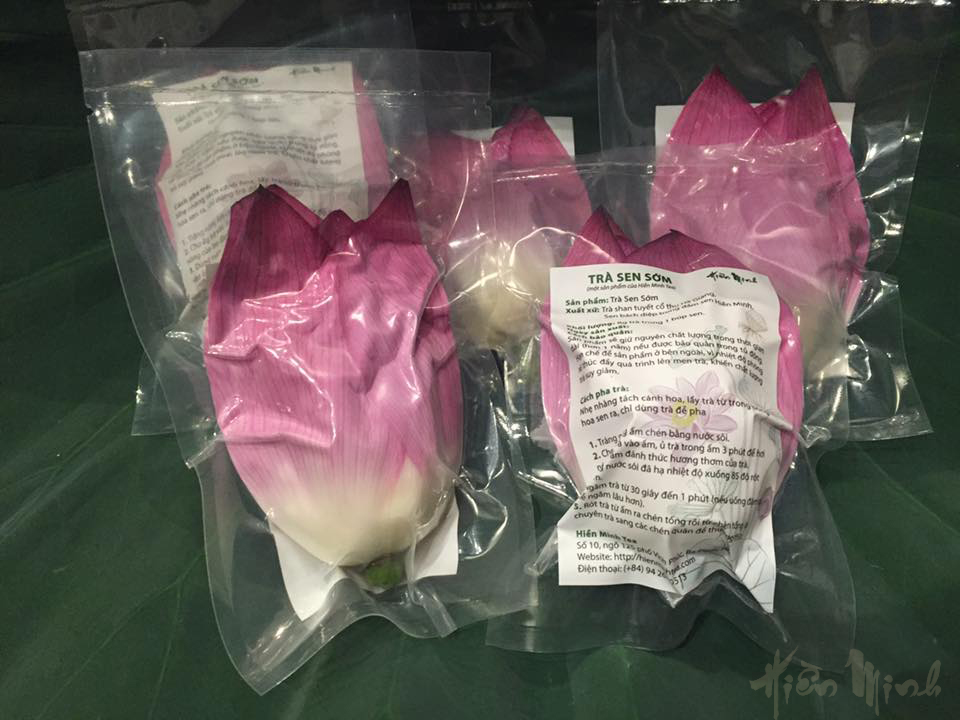 Hiền Minh Tea đã mong ngóng mùa sen với một niềm hân hoan như vậy đó. Để rồi, khi nắng gió mùa hạ gọi dậy trong ao đầm hương hoa thanh ngát, thì trà xanh của Hiền Minh cũng đã sẵn sàng để tay người ủ bọc trong những búp sen hồng. Chúng tôi, bằng tất cả sự thành kính và nâng niu, xin dâng tặng bạn Trà Sen Sớm – một kết tinh của đôi tri kỷ: trà shan tuyết cổ thụ và sen bách diệp Tây Hồ.