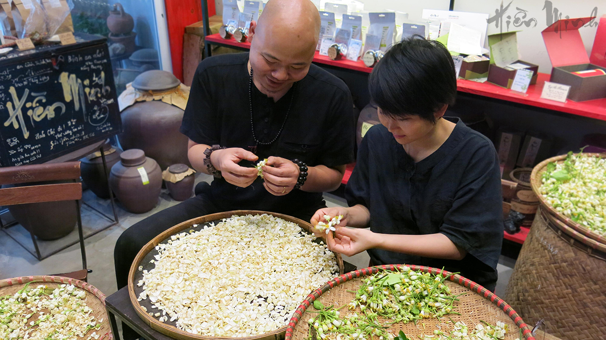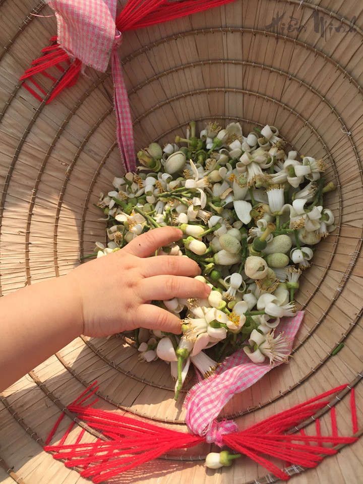 One of Vietnamese traditional scented teas, from the wild pomelo flower with ancient green tea 1 bud 1 leaf from high mountain. This tea was created by us from the inspiration of a song: “Huong Tham” of musician Vu Hoan: “…The fragrance of pomelo flower made the girl confused, quietly had the flower say the love…”